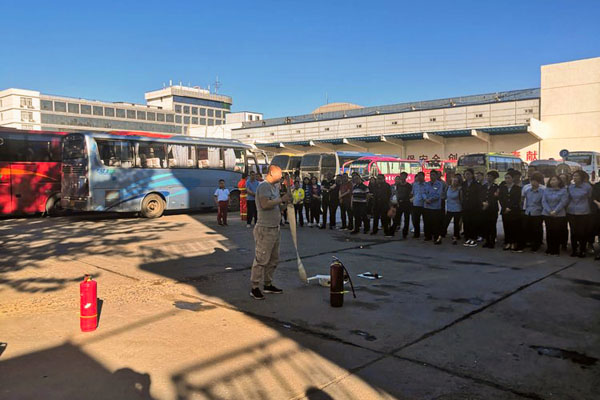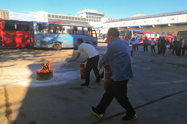 駐站交警、駐站運管相關(guān)領(lǐng)導(dǎo)親臨現(xiàn)場,參與消防演練