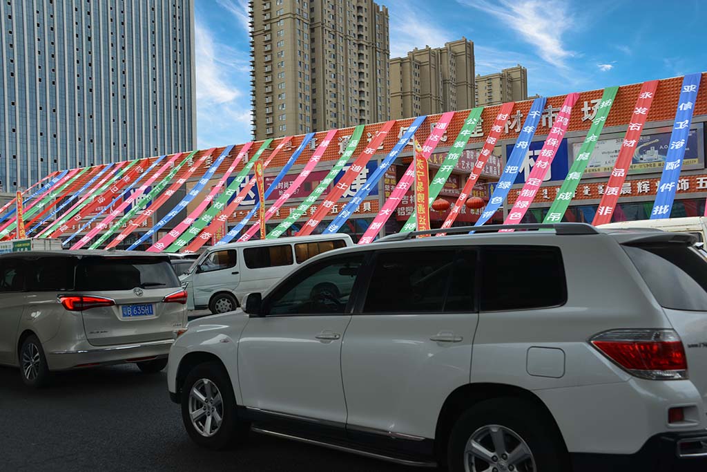 市場外圍氛圍布置、音頻、刀旗、豎幅,打造市場經營氛圍,來吸引客流。吸引消費者,進場消費者禮品發(fā)放,對前期同商戶共同制作的宣傳地墊及商戶得知本次活動內容主動贊助的車輛遮掩布進行發(fā)放。提升經營環(huán)境,商戶和市場工作人員車輛禁止市場內停放,搬運貨物即放即走,給消費者預留車位;商戶門前物品及雜物進行督促清理,建材團隊人員放棄五一休息,進行全員輪班,全力支持五一活動,為消費者確保舒適便捷的購物環(huán)境。
