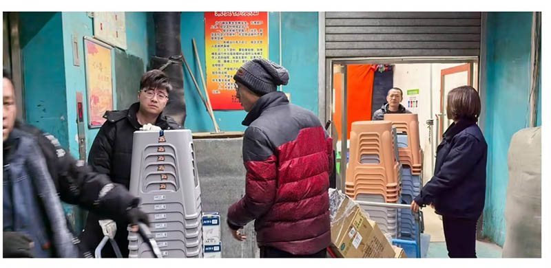 挪騰現(xiàn)場(chǎng),商場(chǎng)團(tuán)隊(duì)按照既定分工迅速開(kāi)展工作。信息組與商戶負(fù)責(zé)人細(xì)致核對(duì)貨物清單,明確搬運(yùn)優(yōu)先極與存放要求;搬運(yùn)組憑借專業(yè)技能,利用肩扛、平板車(chē)、手推車(chē)等設(shè)備,對(duì)大型、較重貨物進(jìn)行安全轉(zhuǎn)移,對(duì)易碎品、精細(xì)物品采用特殊防護(hù)措施;安置組負(fù)責(zé)接收、清點(diǎn)、規(guī)劃、擺放。盡管寒風(fēng)凜冽,面對(duì)沉重的貨物和繁瑣的工作,沒(méi)有一個(gè)人喊苦喊累,始終保持高昂、飽滿的熱情和嚴(yán)謹(jǐn)?shù)膽B(tài)度,經(jīng)過(guò)數(shù)小時(shí)的連續(xù)奮戰(zhàn),原本堆積如山的貨物被安全、高效地騰挪至新場(chǎng)地,且擺放得整整齊齊。